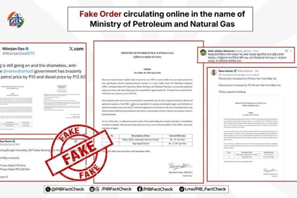 PIB fact check confirms fake Ministry of Petroleum order claiming petrol up ₹10, diesel up ₹12.50 was viral on West Bengal election voting day 2 hrs ago