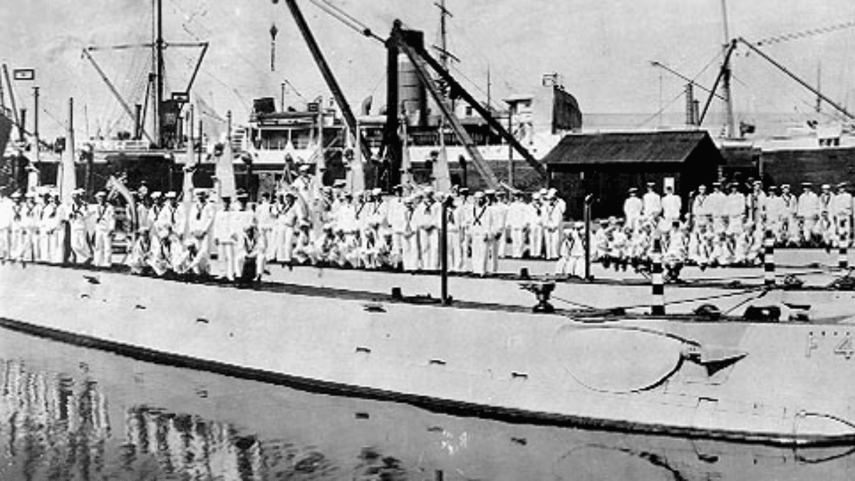 The F-class submarine could carry a crew of 22 people and had a test depth capacity of 200 feet. The submarine was armed with four 18-inch (450 mm) torpedo tubes at the bow, each of which could hold four torpedoes. This setup gave the F-class submarine a strong offensive capability, which enhanced its performance in a range of naval missions.