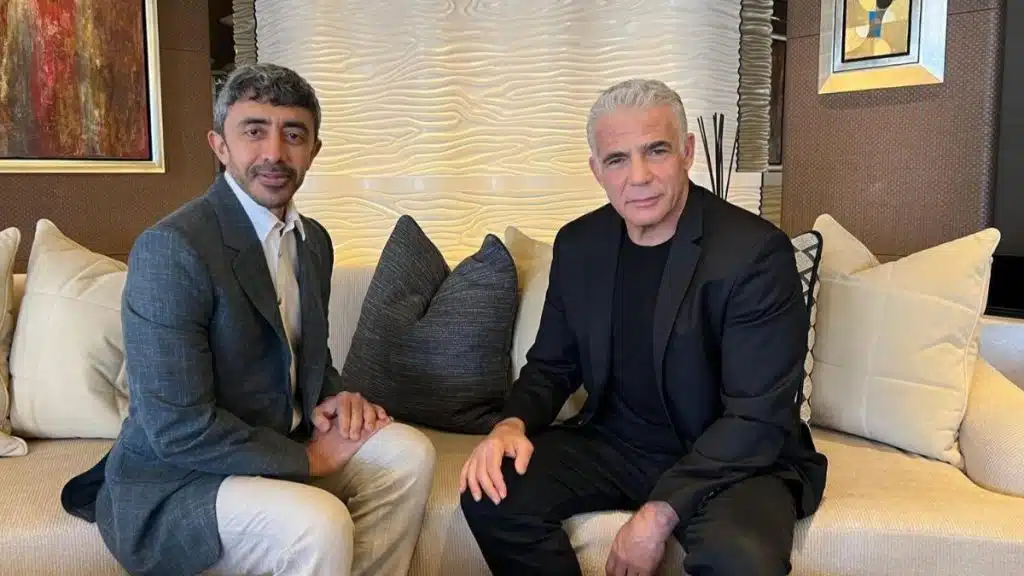 The meeting between the Israeli opposition leader and the UAE’s top diplomat comes over two years after the UAE, along with Bahrain, Sudan, and Morocco, signed the Abraham Accords in 2020. The US-mediated agreement paved the way for these Arab countries to normalize ties with Israel.