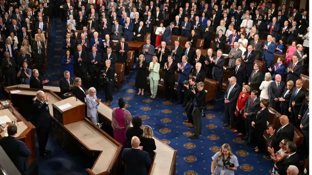 The United States Congress witnessed a controversial display of support as members stood and applauded in recognition of Israel’s ongoing offensive in Gaza, a conflict that has resulted in the deaths of approximately 40,000 civilians.