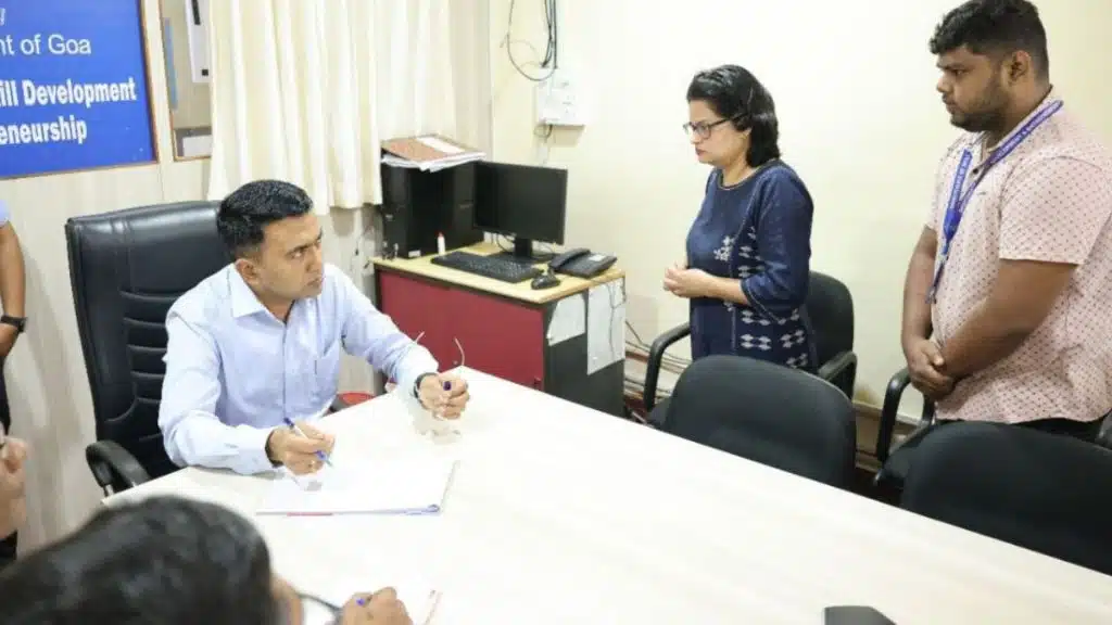Goa Chief Minister Pramod Sawant visited the Office of Goa Skill Development and Entrepreneurship today to evaluate the department’s current operations and propose necessary improvements. The inspection aimed to address inefficiencies and strengthen the department’s capacity to foster skill development across the state.
