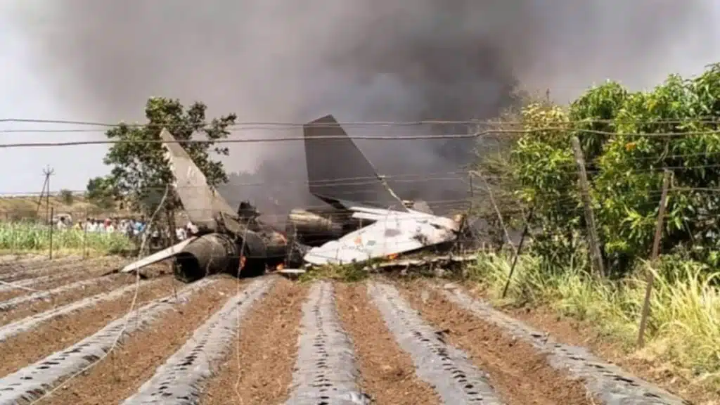 Eyewitnesses reported seeing the twin-seat multi-role jet spewing thick black smoke trailing behind it before crashing in an open field near Shirasgaon village around 10 am. The impact triggered a massive fireball, scattering debris across a 500-meter radius.