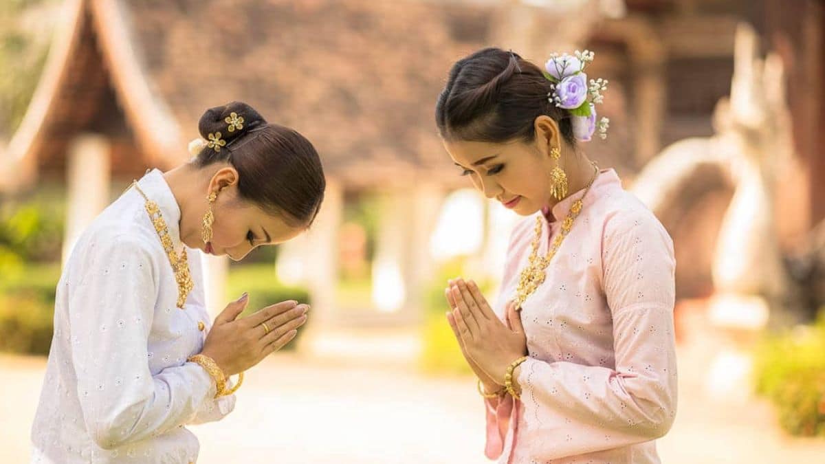 The ‘Wai’ is Thailand’s way of greeting, respect, and reverence. It involves bringing both palms together in a prayer-like position and bowing or dipping one’s head. The gesture is often accompanied by a slight bow or a nod, depending on the social context. This traditional way of greeting, ‘Wai’ is not only a symbol of politeness but also reflects the Thailand people’s strong cultural beliefs and values.