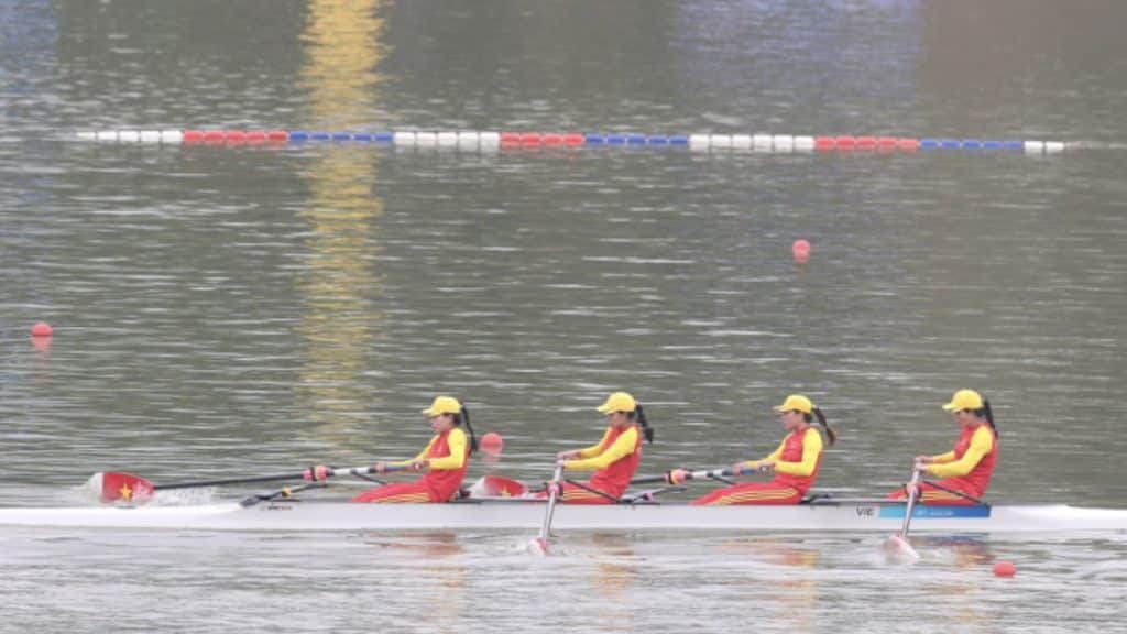 The women’s coxless fours team, comprising Đinh Thị Hảo, Hà Thị Vui, Phạm Thị Huệ, and Dư Thị Bông, demonstrated exceptional skill and determination. They finished in third place, clinching a well-deserved bronze medal.