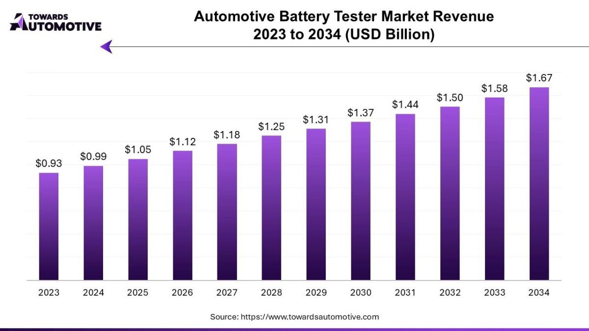 Ottawa, Oct. 07, 2025 (GLOBE NEWSWIRE) — The global automotive battery tester market reached approximately USD 1.05 billion in 2025, with projections suggesting it will climb to USD 1.67 billion in 2034, according to a report from Towards Automotive, a sister firm of Precedence Research.