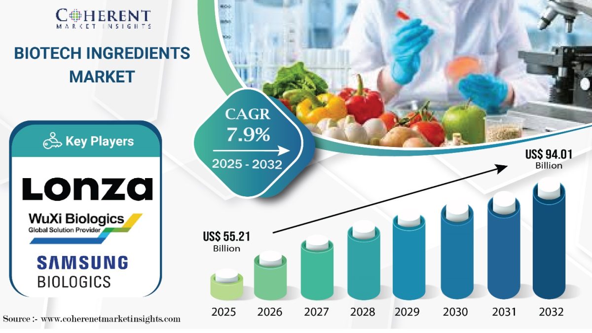 Biotech Ingredients Market Poised for Growth, Expected to Hit USD 94.01 Billion by 2032 -Coherent Market Insights