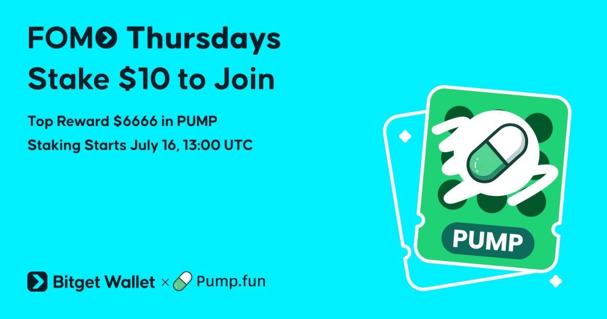“Fomo Thursdays offers a simple, wallet-native way for users to access new token ecosystems,” said Jamie Elkaleh, CMO of Bitget Wallet. “By featuring PUMP this week, we’re reflecting broader market interest in meme-token ecosystems as a growing segment of onchain activity.” The staking window runs from July 16 at 13:00 UTC to July 17 at 13:00 UTC, with PUMP token rewards available via Solana chain and USDT refunds available via BNB Chain from July 17 at 14:00 UTC.