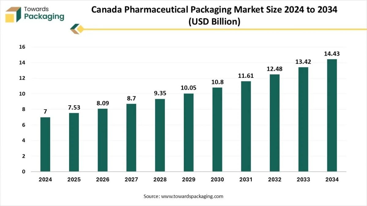 Ottawa, Sept. 30, 2025 (GLOBE NEWSWIRE) — The global Canada pharmaceutical packaging market hit USD 7.53 billion in 2025, with current forecasts pointing to USD 14.43 billion by 2034, according to Towards Packaging, a sister firm of Precedence Research.