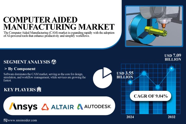 According to the SNS Insider,“The Computer Aided Manufacturing Market size was valued at USD 3.55 Billion in 2024 and is projected to reach USD 7.09 Billion by 2032, growing at a CAGR of 9.04% during 2025-2032.”