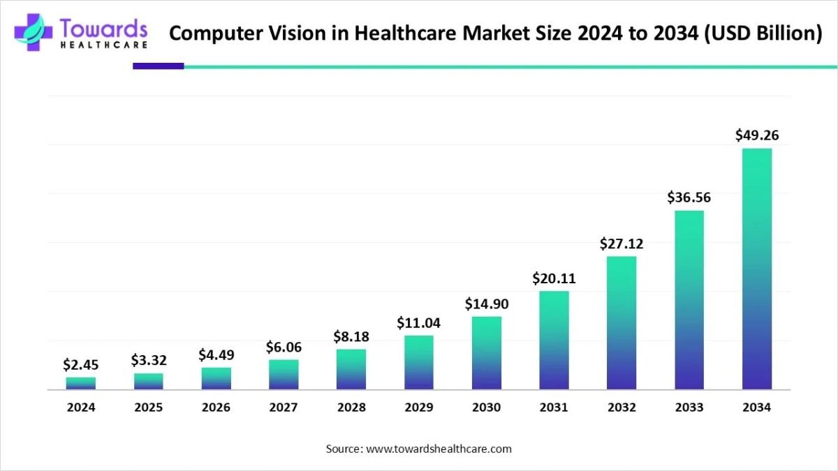 Ottawa, Nov. 06, 2025 (GLOBE NEWSWIRE) — The global computer vision in healthcare market size was valued at USD 2.45 billion in 2024 and is predicted to hit around USD 49.26 billion by 2034, rising at a 35.25% CAGR, a study published by Towards Healthcare a sister firm of Precedence Research.