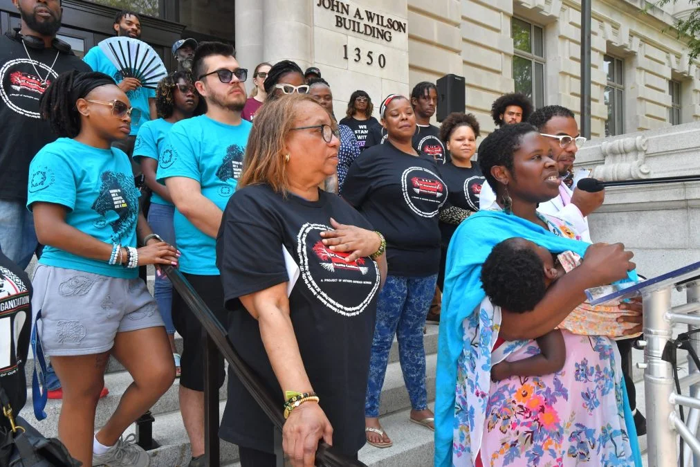 The event was held from 11:30 a.m. – 1:30 p.m. on the steps of the Wilson Building during the Council’s final budget deliberations. Organizational sponsors included Mother’s Outreach Network, Bread for the City, My Sister’s Place, DC Action, Let’s GO DMV, ONE DC, Save Us Now, SPACEs in ACTION, Serve Your City/Ward 6 Mutual Aid, ROC-DC, and LIFT, Inc.