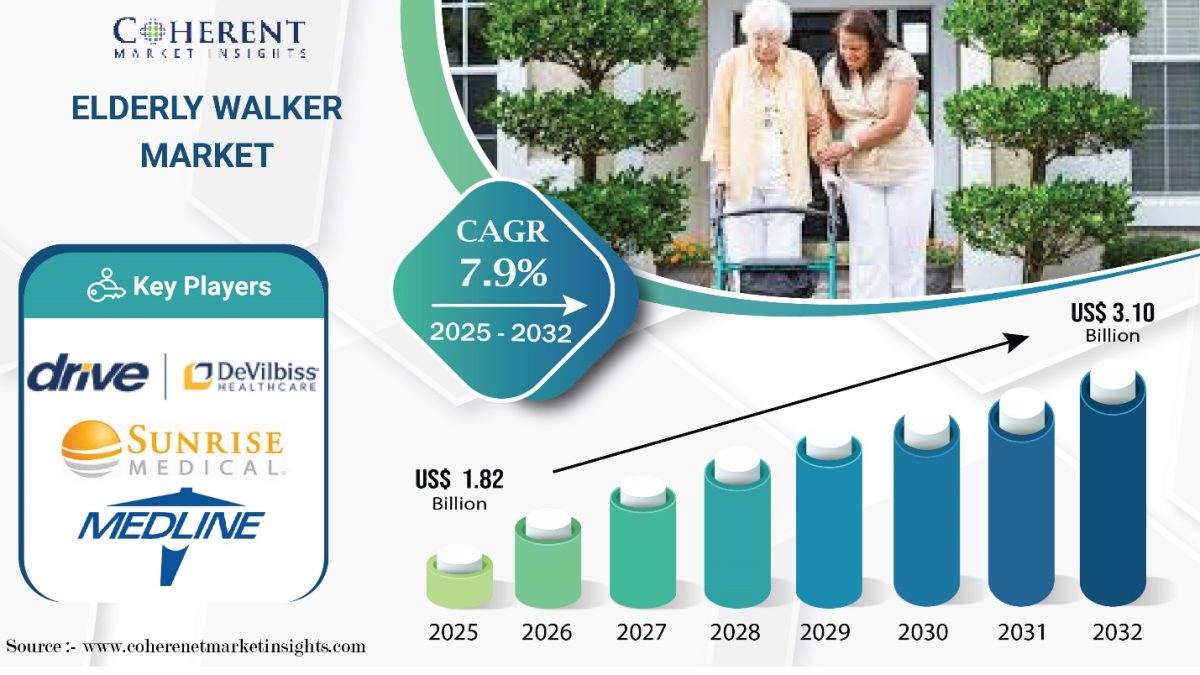 Burlingame, CA, Nov. 12, 2025 (GLOBE NEWSWIRE) — The Global Elderly Walker Market is estimated to be valued at USD 1.82 Bn in 2025 and is expected to reach USD 3.10 Bn by 2032, exhibiting a compound annual growth rate (CAGR) of 7.9% from 2025 to 2032. This steady growth is driven by the rising demand for elderly assistive devices, supported by a growing aging population and increasing global awareness of eldercare solutions.
