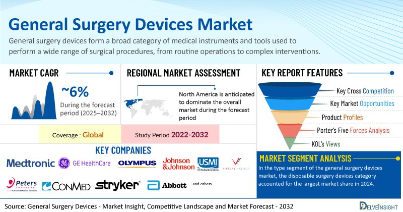 New York, USA, Oct. 02, 2025 (GLOBE NEWSWIRE) — Global General Surgery Devices Market to Register Sustainable Growth at a CAGR of ~6% by 2032 | DelveInsight