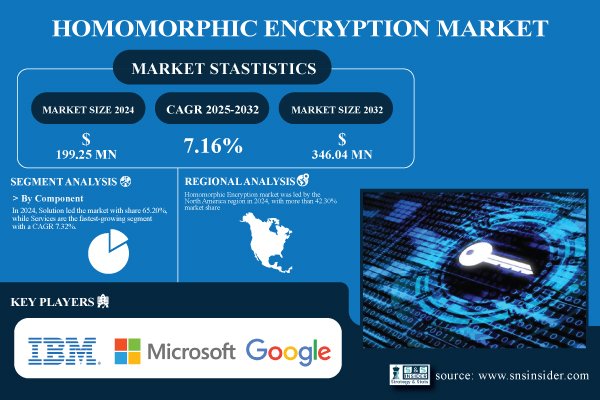 Austin, Sept. 29, 2025 (GLOBE NEWSWIRE) — The Homomorphic Encryption Market Size was valued at USD 199.25 Million in 2024 and is expected to reach USD 346.04 Million by 2032 and grow at a CAGR of 7.16% over 2025-2032.