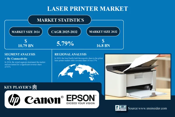 According to the SNS Insider,“The Laser Printer Market was valued at USD 10.79 Billion in 2024 and is expected to reach USD 16.8 Billion by 2032, growing at a CAGR of 5.79% over 2025-2032.”