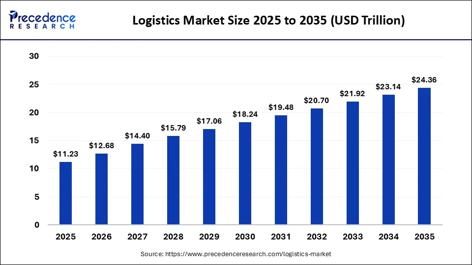According to Precedence Research, the global logistics market size surpassed USD 11.23 trillion in 2025 and is predicted to increase from USD 12.68 trillion in 2026 to approximately USD 24.36 trillion by 2035, expanding at a CAGR of 8.05% from 2026 to 2035.