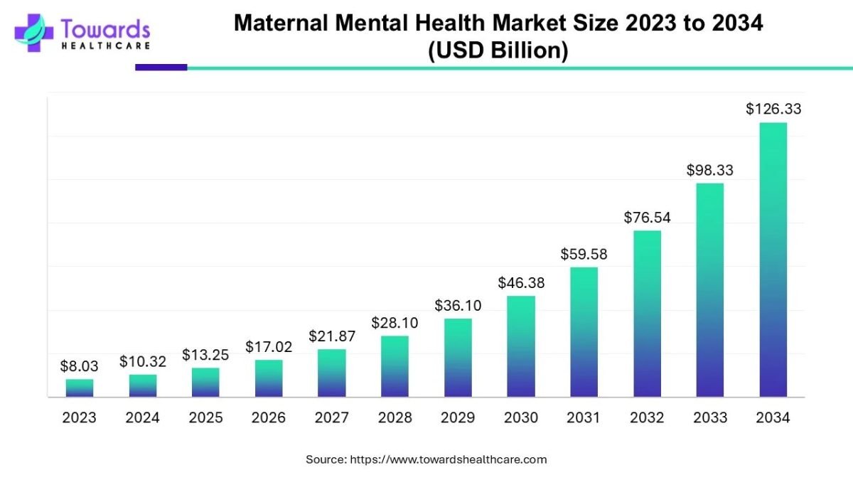 Ottawa, Sept. 19, 2025 (GLOBE NEWSWIRE) — The global maternal mental health market size was valued at USD 10.32 billion in 2024 and is predicted to hit around USD 126.33 billion by 2034, rising at a 28.47% CAGR, a study published by Towards Healthcare a sister firm of Precedence Research.