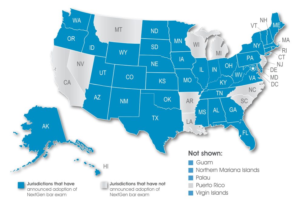 The NextGen UBE will be administered by ten jurisdictions in July 2026. A total of 45 jurisdictions have announced plans to begin administering the NextGen exam between July 2026 and July 2028.