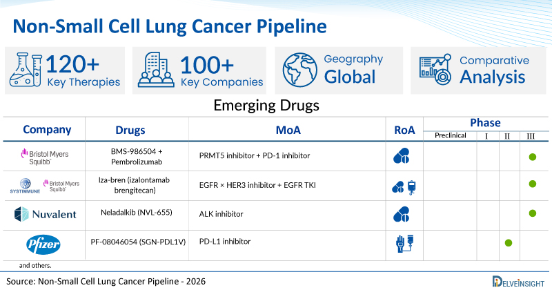 DelveInsight’s ‘Non-Small Cell Lung Cancer Pipeline Insight 2026’ report provides comprehensive global coverage of pipeline therapies for non-small cell lung cancer across various stages of clinical development. The report offers an in-depth analysis of key trends, emerging therapies, and competitive landscape dynamics, highlighting the strategies of major pharmaceutical companies to advance the pipeline and capitalize on future growth opportunities. In addition, it includes critical insights into clinical trial benchmarking, partnering and licensing activities, and regulatory pathways involving the FDA and EMA, enabling stakeholders to make informed decisions and optimize development strategies within the non-small cell lung cancer domain.