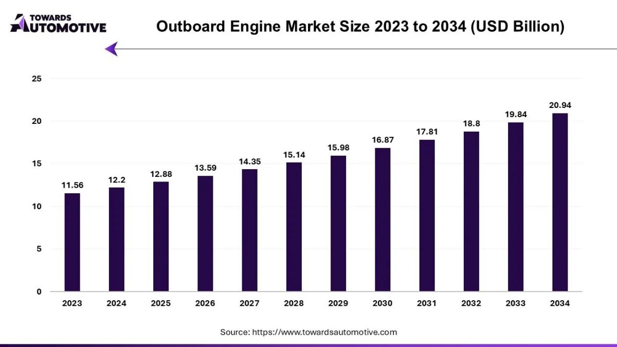 According to a recent analysis by Towards Automotive, the global outboard engines market is projected to expand from USD 13.59 billion in 2026 to USD 20.94 billion by 2034, recording a CAGR of 5.55% between 2025 and 2034.