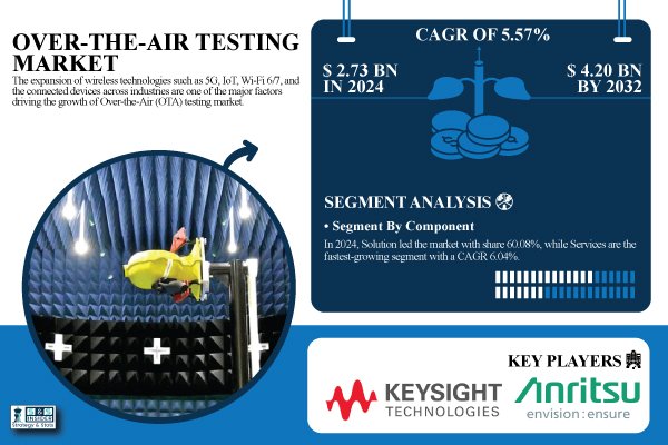 The market for over-the-air (OTA) testing is expanding due in large part to the proliferation of wireless technologies, such as 5G, IoT, Wi-Fi 6/7, and linked devices across industries. Device manufacturers and network operators require antennas, receivers, and transmitters to function as intended and satisfy compliance and reliability standards as the demand for seamless wireless communication keeps growing.
