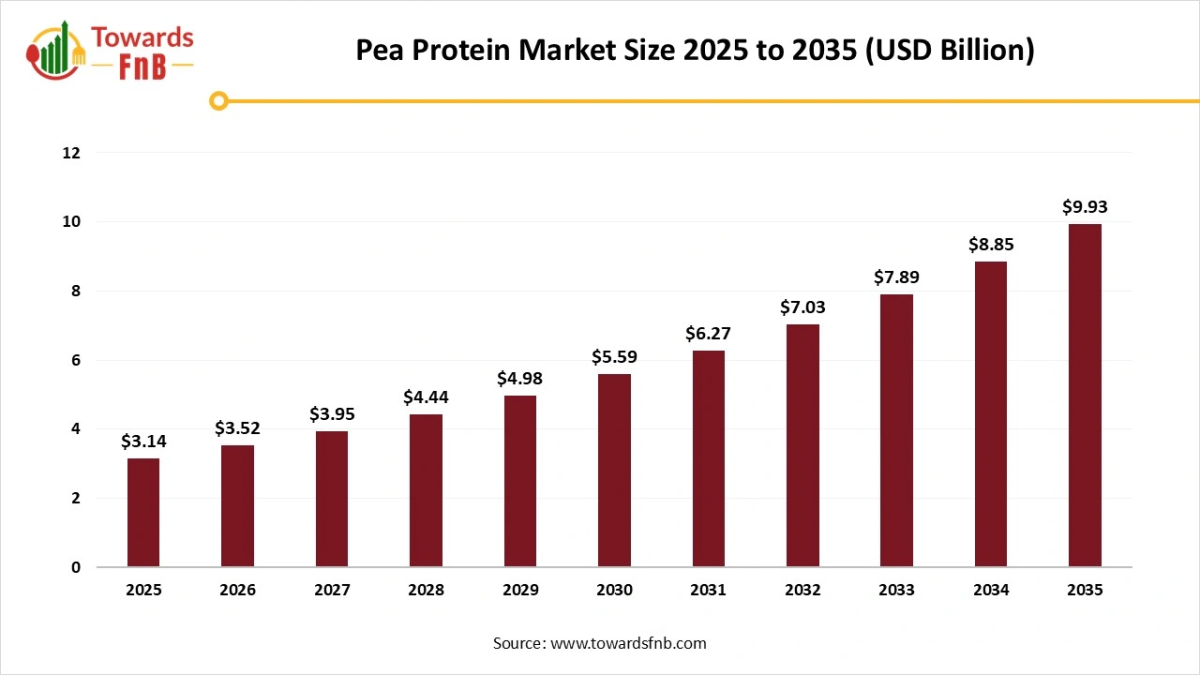 Ottawa, Jan. 22, 2026 (GLOBE NEWSWIRE) — The global pea protein market size stood at USD 3.14 billion in 2025 and is predicted to grow from USD 3.52 billion in 2026 to reach around USD 9.93 billion by 2035, as reported by Towards FnB, a sister firm of Precedence Research.