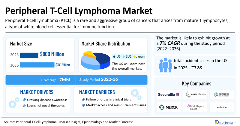 - The market size for peripheral T-cell lymphoma was found to be USD 800 million in the 7MM in 2025.