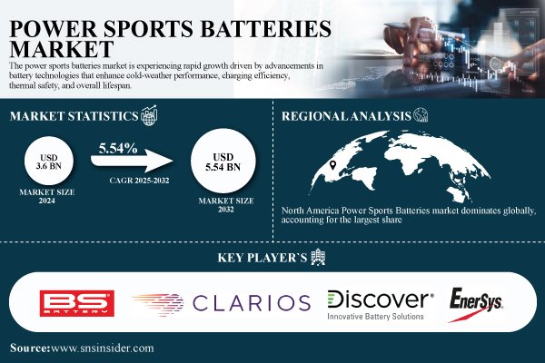 According to the SNS Insider,“The Powersports Batteries Market size was valued at USD 3.6 Billion in 2024 and is projected to reach USD 5.54 Billion by 2032, growing at a CAGR of 5.54% during 2025-2032.”
