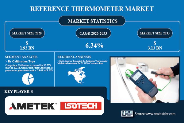 According to the SNS Insider,“The Reference Thermometer Market size was valued at USD 1.92 Billion in 2025E and is projected to reach USD 3.13 Billion by 2033, growing at a CAGR of 6.34% over 2026-2033.”