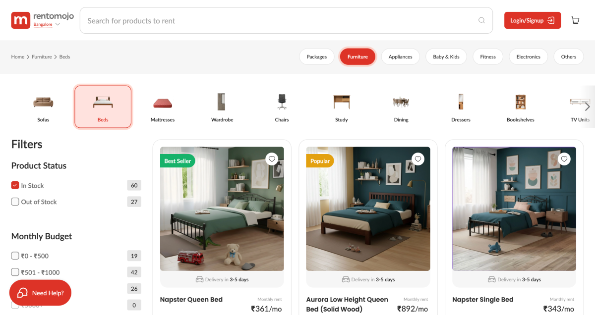 As a result, rental models are emerging as a practical alternative for furnishing essential living spaces. Rentomojo’s bed and mattress rental service allows users to access different bed sizes and mattress types without committing to long-term ownership. This flexibility enables consumers to align their furniture choices with their current living situations, rather than trying to predict future requirements at the time of purchase.