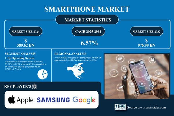 According to the SNS Insider,“The Smartphone Market Size was worth USD 589.62 Billion in 2024 and is expected to reach USD 976.99 Billion by 2032, expanding at a CAGR of 6.57% during 2025-2032.”