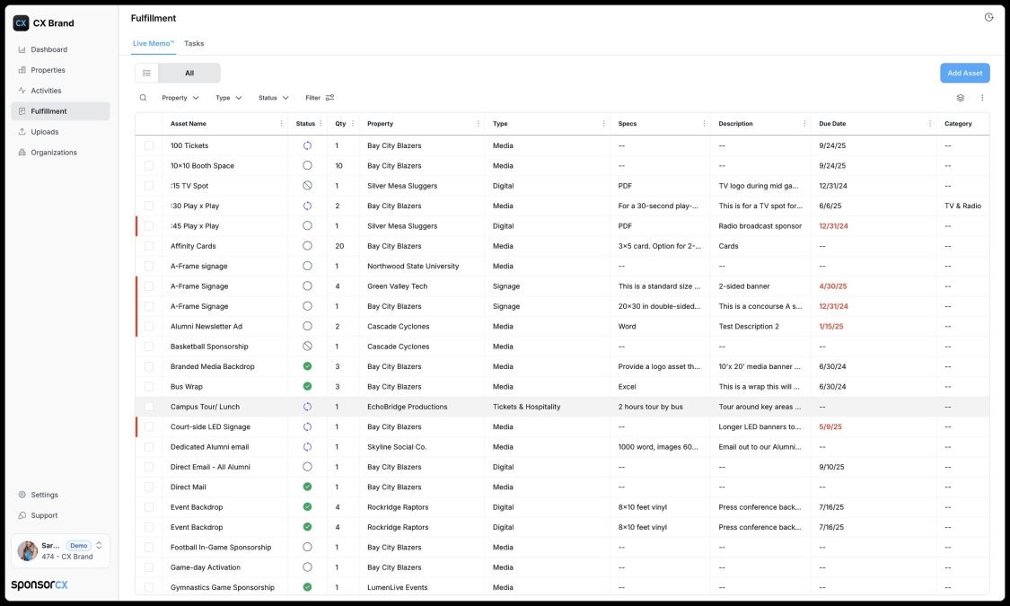 Built for the complexity of modern brand sponsorships, the platform brings every activation, asset, deadline, and partner into one centralized system making it easier than ever to stay organized, aligned, and on track.
