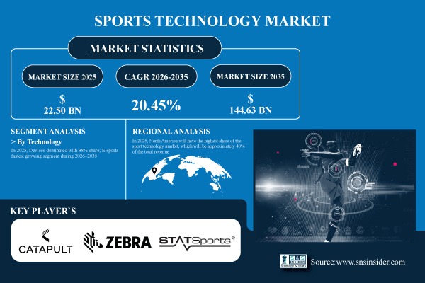According to the SNS Insider, “The Sports Technology Market Size was valued at USD 22.50 Billion in 2025 and is projected to reach USD 144.63 Billion by 2035, growing at a CAGR of 20.45% during 2026–2035.”