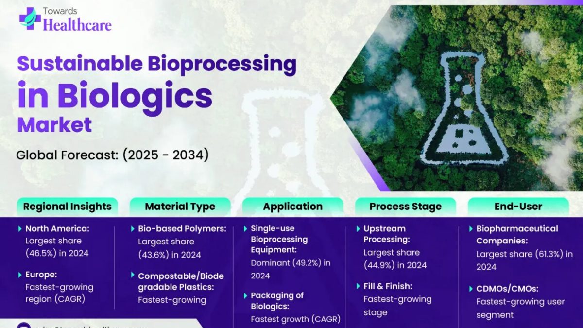 Ottawa, Oct. 29, 2025 (GLOBE NEWSWIRE) — The sustainable bioprocessing materials market is set to experience substantial growth between 2024 and 2034, propelled by the increasing demand for environmentally friendly solutions in biopharmaceutical manufacturing. Strong regulatory backing for green technologies and the expanding focus on circular bioeconomy practices are accelerating market adoption.
