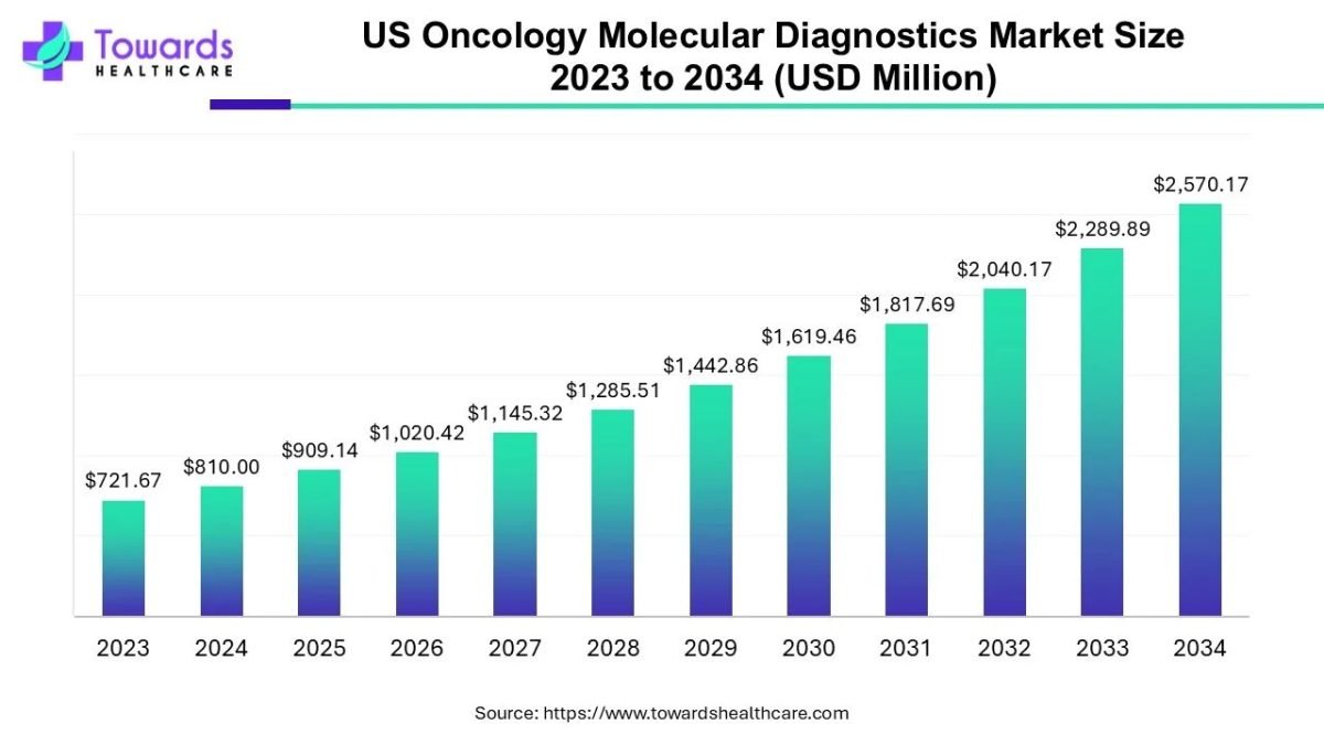 Ottawa, Sept. 23, 2025 (GLOBE NEWSWIRE) — The U.S. oncology molecular diagnostics market size was valued at USD 810 million in 2024 and is predicted to hit around USD 2570.17 million by 2034, rising at a 12.24% CAGR, a study published by Towards Healthcare a sister firm of Precedence Research.