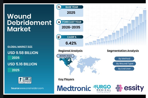 Austin, April 30, 2026 (GLOBE NEWSWIRE) — According to SNS Insider, The Wound Debridement Market size is valued at USD 5.16 Billion in 2025 and is projected to reach USD 9.58 Billion by 2035, growing at a CAGR of 6.42% during the forecast period of 2026–2035.