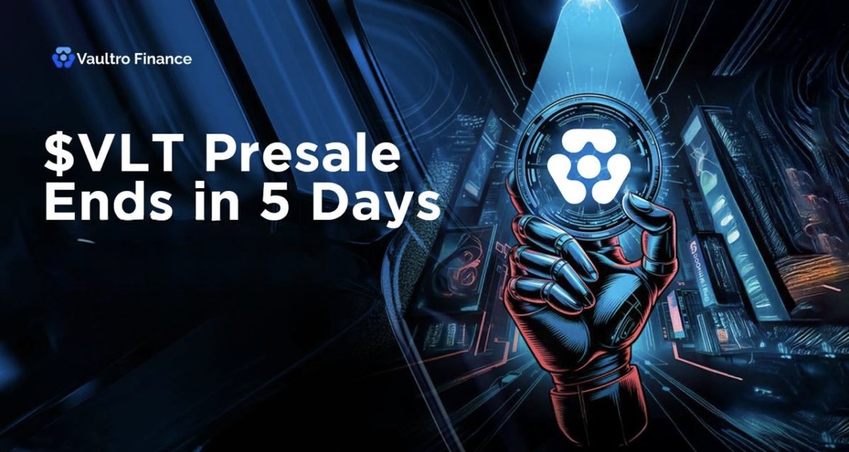 XRP News: Vaultro Finance Presale on XRP Enters Final 5 Days with 75% of $VLT Tokens Claimed – Join $VLT PresaleDisclaimer: The above press release comes to you under an arrangement with GlobeNewswire. Business Upturn takes no editorial responsibility for the same.