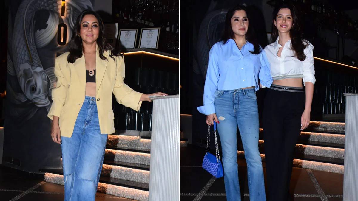 Gauri opted for bold outfit as she donned a stylish beige blazer paired with a black bralette top and wide denim pants. She completed her look with some matching footwear and added some bold golden earrings.