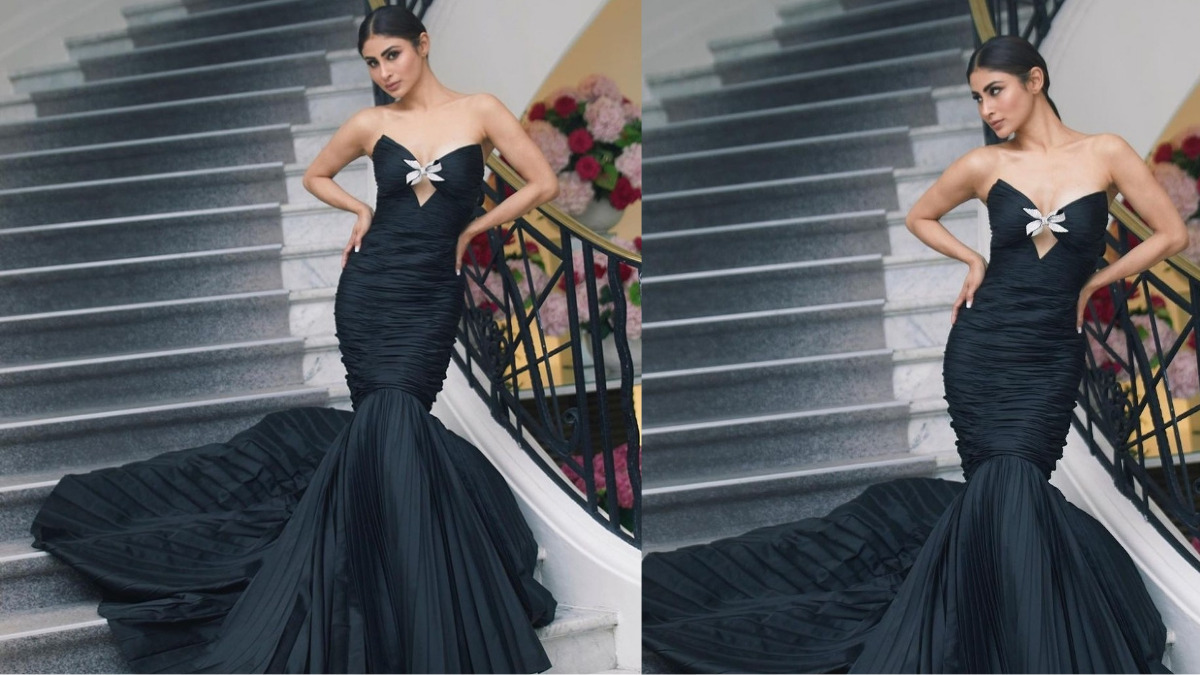 Mouni dazzled her look in a classic black mermaid-like full-length gown, looking extremely stunning. She didn’t add any jewellery to her look which indeed was a great idea as all the attention was on her visuals, though she complimented her overall look with minimal yet chic makeup and an elegant low ponytail.