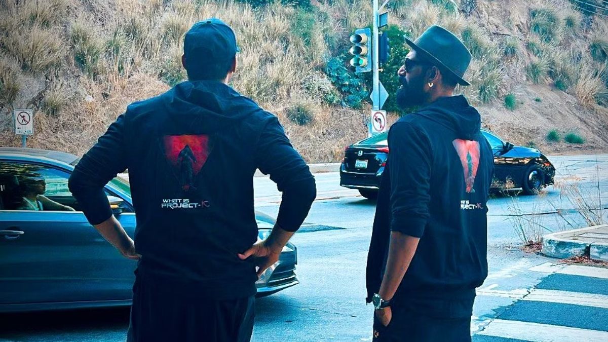 In the picture, Prabhas and Rana can be seen facing their back toward the camera as they enjoy the view of the hills. A signboard of ‘Hollywood’ can be spotted in the backdrop. Both men dressed in ‘What is Project K’ hoodie.