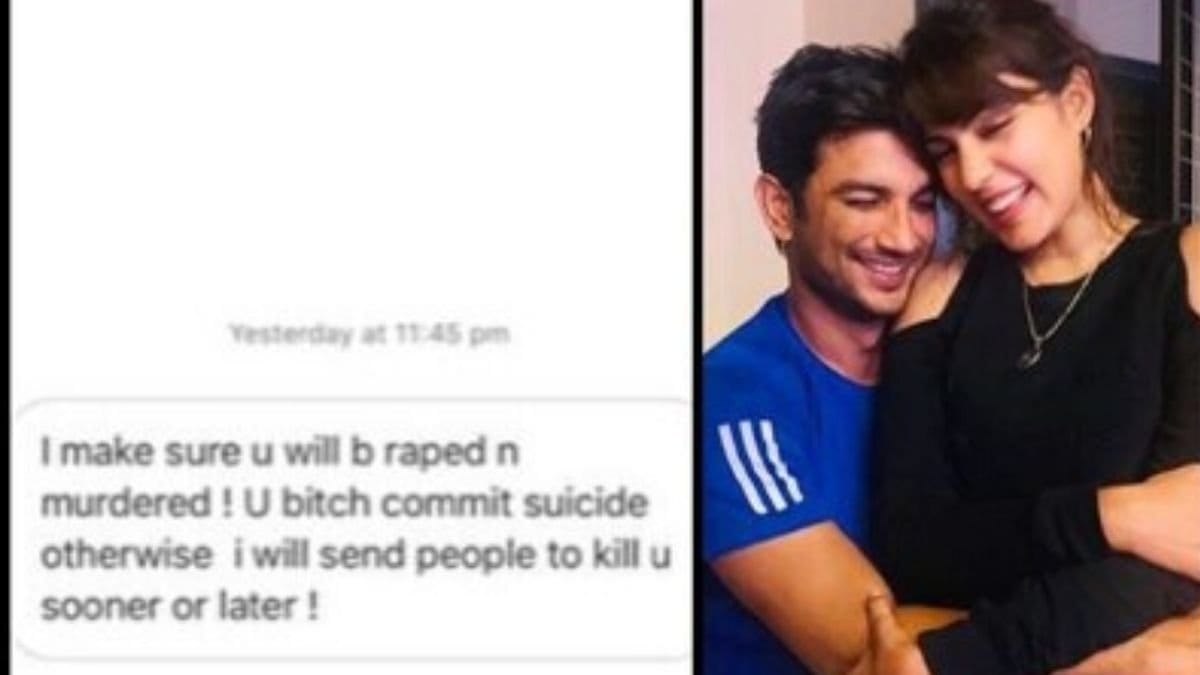 Actress Rhea Chakraborty shared the screenshot of a user who sent her rape and death threats on social media. The actress has been constantly humiliated by Sushant Singh Rajput’s fans ever since the actor’s sudden demise on June 14, 2020.