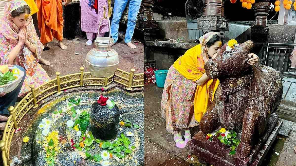 Sara shared glimpses of her visit on Instagram, where she can be seen dressed in a floral yellow suit with a matching shawl. She was performing the Rudra Abhishek, shringar and aarti during her visit.