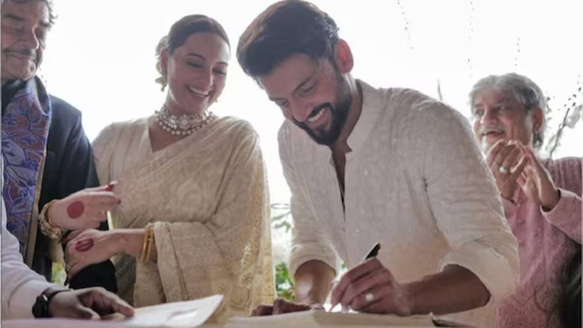Sonakshi Sinha got married to her longtime beau Zaheer Iqbal on Sunday in an intimate setting. The actress have now shared a video from her wedding, wherein the couple can seen registering their marriage in presence of their parents and close friends. The invitees at the wedding included bride’s parents, Shatrughan Sinha and Poonam Sinha, and friends such as Huma Qureshi and Siddharth.