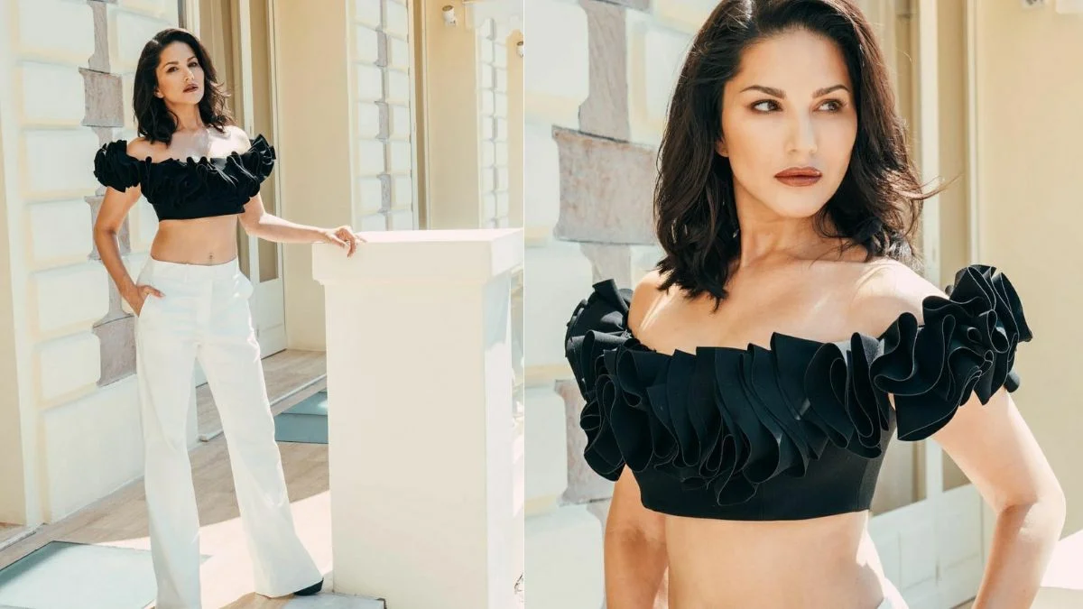 Sunny Leone has marked her presence at Cannes for the very first time. Sunny’s first appearance has been mesmerizing as she attends the press conference of her upcoming movie Kennedy. The moment has become one of the most talked about thing as Sunny slays the carpet in the most simplest way possible. Sunny opted for black ruffled off shoulder crop top with white pants looking like the epitome of grace and elegance.