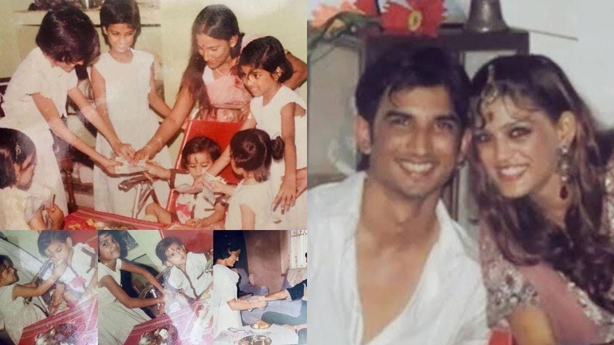 The late actor Sushant Singh Rajput’s elder sister Shweta Singh Kiriti, shared a collage of throwback photos of their Rakshabandhan celebrations as children. In the photo it is seen that Sushant is surrounded by all his sisters who are fussing over him and tying rakhis.