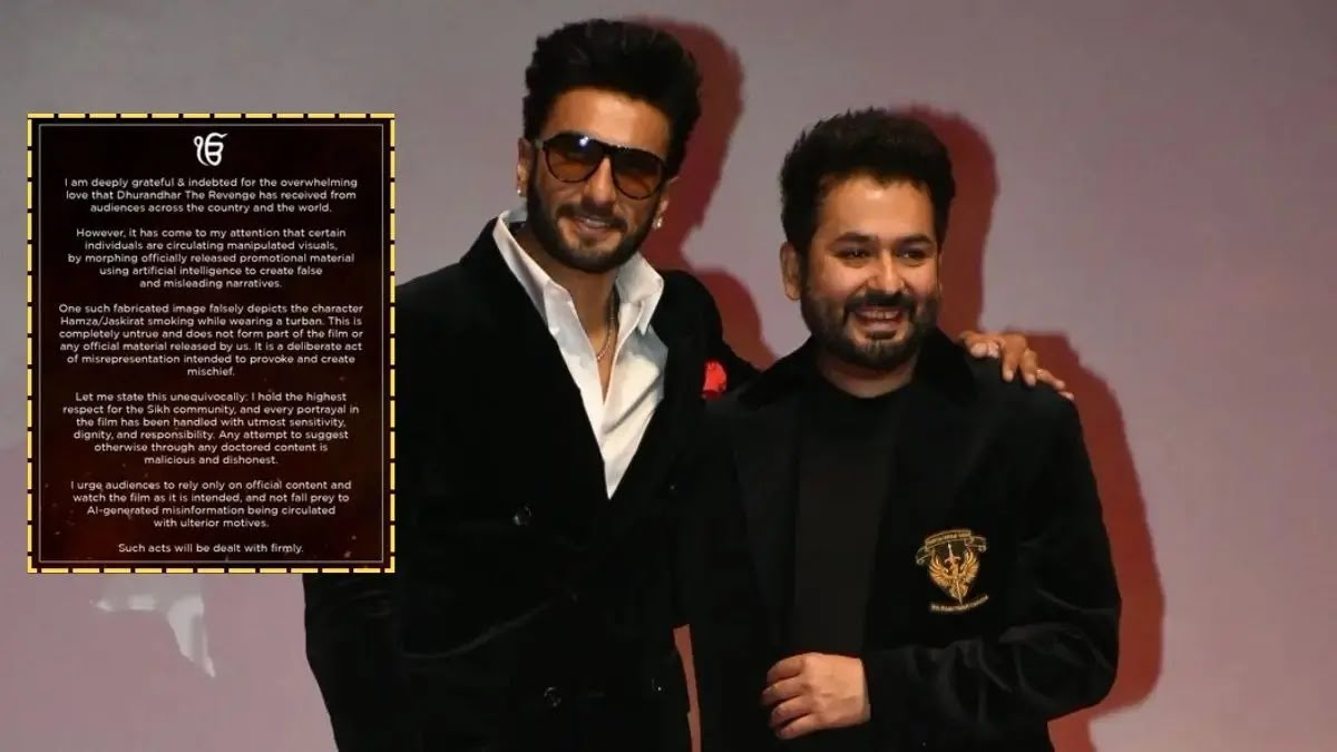 Director Aditya Dhar issued a strongly worded statement on Thursday, categorically denying the authenticity of viral images showing lead actor Ranveer Singh’s character — Hamza Ali Mazari (formerly Jaskirat Singh Rangi) — smoking while wearing a turban. Dhar described the visuals as “completely untrue,” “fabricated,” and created by “morphing officially released promotional material using artificial intelligence” with the clear intent “to provoke and create mischief.”