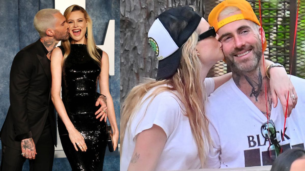 At Disneyland on Saturday, Adam Levine and his wife Behati Prinsloo were beaming with happiness as they celebrated his 44th birthday. The 34-year-old Victoria’s Secret model and the Maroon 5 rocker put on a romantic show, wrapping his arms around her and kissing her cheek at one point. Despite being married to Behati, Levine was accused of sending inappropriate texts to other women months earlier. Behati wore ripped jeans, a black cap that was worn backward, and dark shades to create a casual appearance. She chose a natural makeup look and wore her blonde hair in loose waves to show off her pretty features.