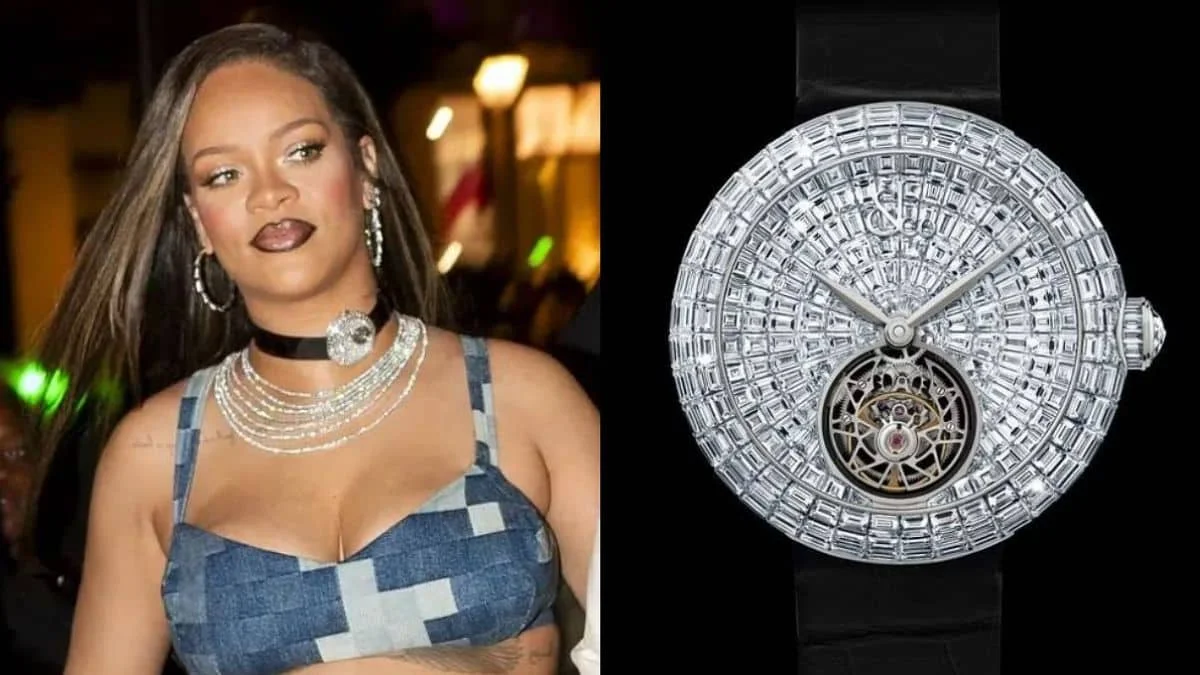 Taking the spotlight away from one of the most iconic female artists, Rihanna is no easy task. Her watch, which she truly wore around her neck, has recently stolen the show. At Paris Fashion Week, Rihanna brought her A-game to Pharrell Williams’ inaugural LV collection. She supported Pharrell, who is driving the new campaign for the French luxury label.