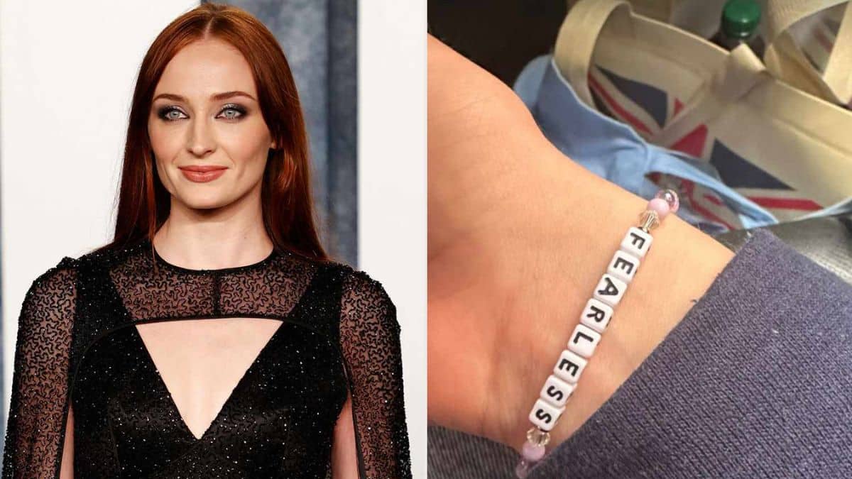 ‘Game of Thrones’ star Sophie Turner, shared a selfie wearing a bracelet with the title of Taylor Swift’s second studio album, ‘Fearless,’ printed on it, according to People.