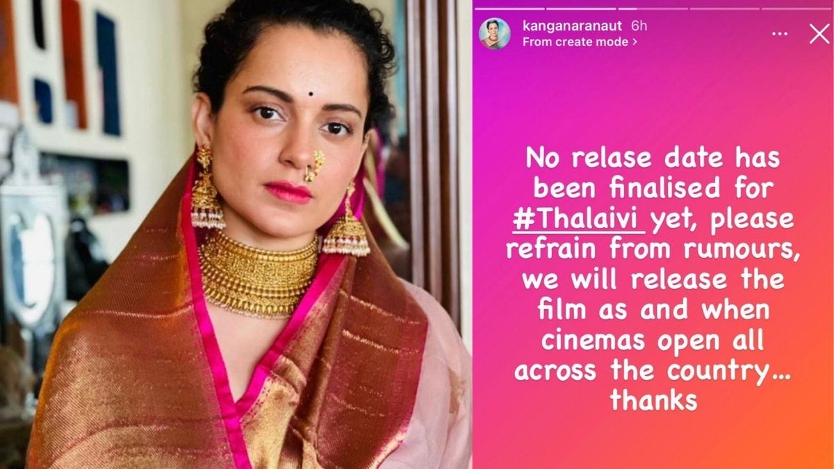 Bollywood star Kangana Ranaut’s forthcoming biographical film ‘Thalaivi’ is about the life of Politician and Veteran film actress, J. Jayalalithaa, who served six times as the Chief Minister of Tamil Nadu. Kangana will be seen portraying the character of Jayalalithaa. With the first release date of the film pushed further, the rumours of the original release date begun spreading over the internet. Kangana took to her Instagram stories and opened about the date release of her film. The actress wrote, “No release date has been finalized for #Thalaivi yet, please refrain from rumours, we will release the film as and when cinemas open all across the country.”